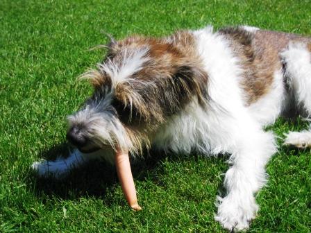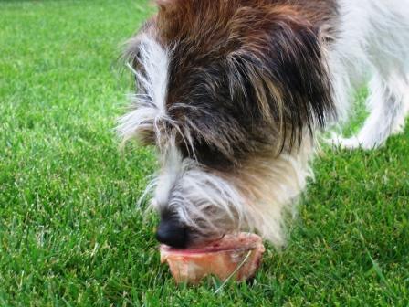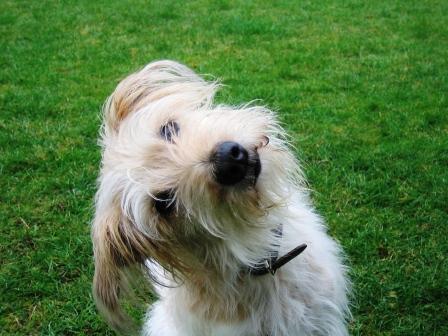 Frauchen hat aber wieder leckeres Gedörrtes - da lohnt sich das Stillhalten.