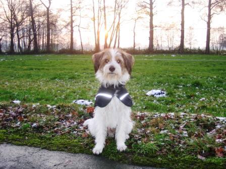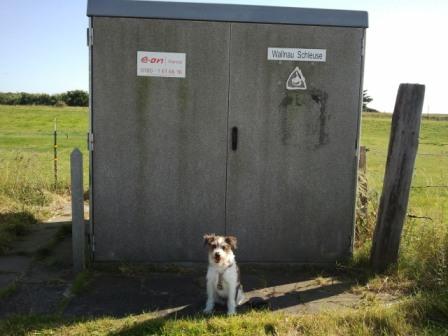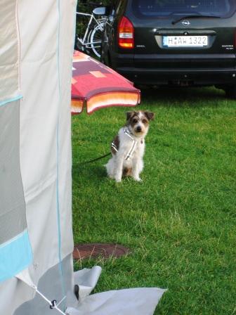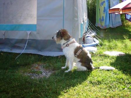 Das war ganz schön gruselig - die Plane wehte doll im Wind - aber Frauchen zuliebe habe ich mal wieder stillgehalten!