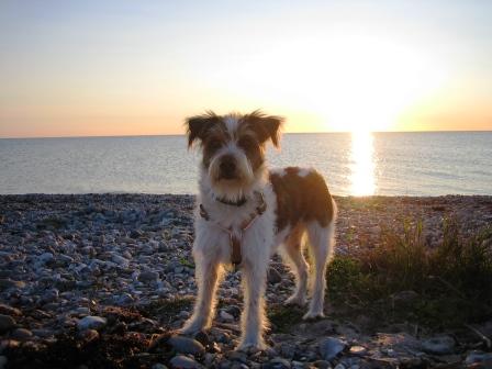 Frauchen wollte unbedingt das Boot im Hintergrund haben - da habe ich meinen Rücken ein wenig durchgebogen.