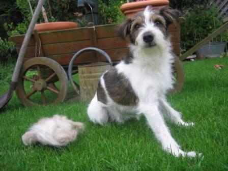 Jetzt ist es so warm, dass ich meinen Pelz ablegen muss. Seht her - ich habe braune Unterwolle - hihi.